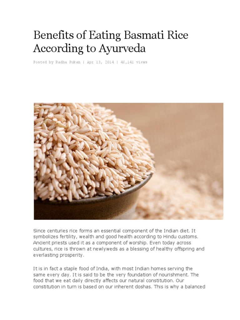 Benefits of Eating Basmati Rice According to Ayurveda from www.remedyspot.com Well, there have been scientifically proven benefits to eating basmati rice. Basmati rice can be much more nutritious than other types of rice. Basmati rice is a distinctive species of rice that come from india. Basmati rice does not belong to products that can contribute to weight loss, on the contrary, in order not to gain weight, one should not. It because depending on the extent of the grinding process. One cup of basmati rice contains 210 calories and is fat free. The benefits of basmati rice. But try to buy basmati rice with the outer cover because it is.
